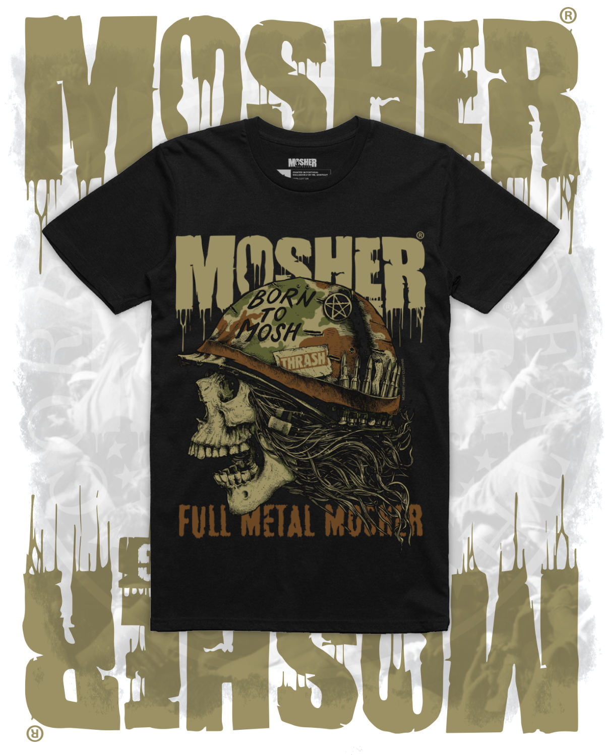 - brutale "Full Metal Mosher" Kunstwerke auf der Vorderseite, exklusiv bei Mosher Clothing, kreiert vonRaf The Might oder "Zu viele Schädel");;